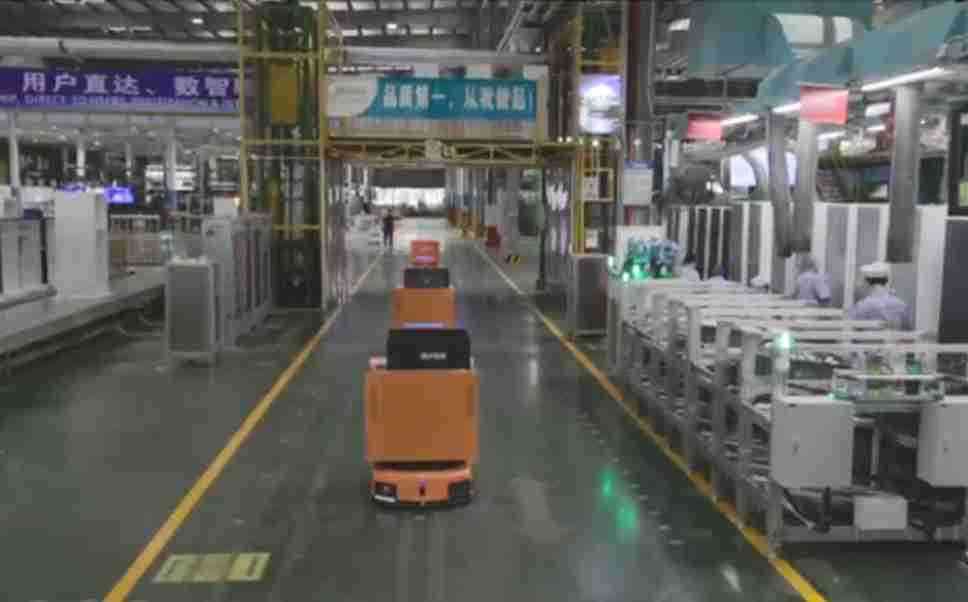 为车载冰箱物流配送打造的智能解决方案,,包含产中物流通过潜伏举升AMR搬运至线边,,产后成品物流智能仓储,,,流程包含产中物流智能齐套入库,,,线边安灯叫料AMR智能配送至线边,,,,成品入库、、、出库,,,,通过无人堆高车机器人,,,智能仓储管理替代人工作业管理,,,实现更高存储、、、、更高效率、、、更具柔性化的解决方案。。。